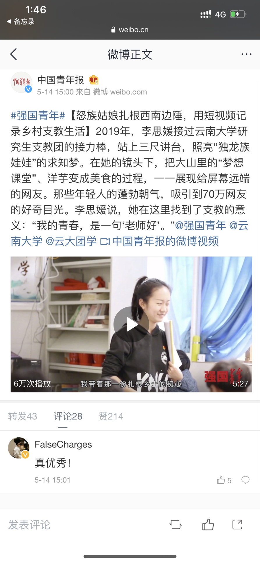 中国青年报:怒族姑娘扎根西南边陲,用段视频记录乡村支教生活