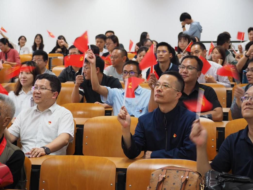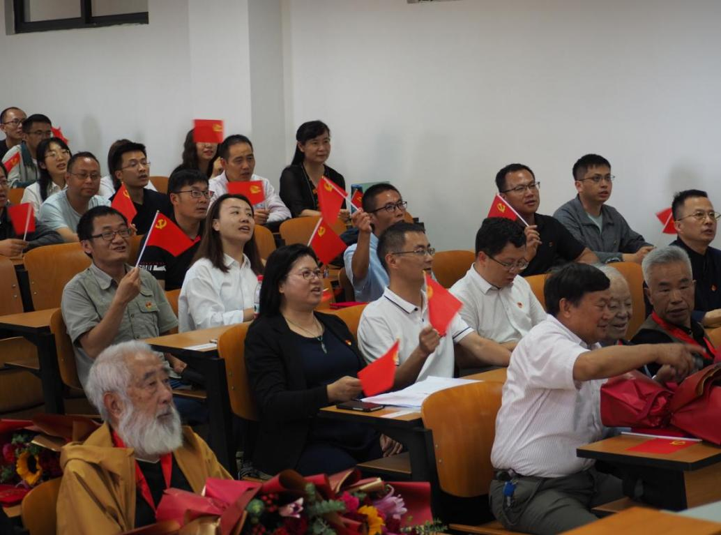 在庄重严肃的氛围中,李娟书记带领全体新党员及在场老党员重温入党誓词,全体党员面向党旗,高举右拳重温入党誓词,神情庄重、声音铿锵,通过重温入党誓词,强化师生党员作为一名共产党员的责任感和使命感。