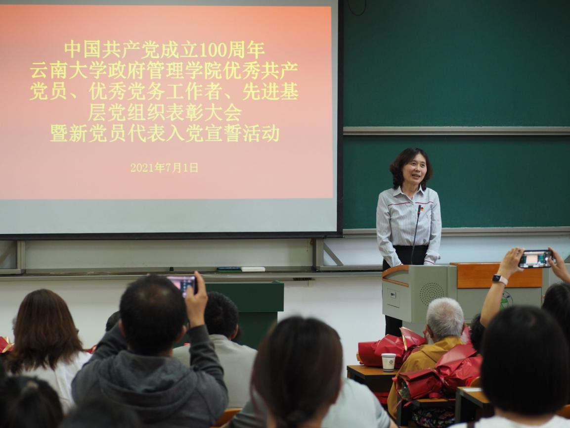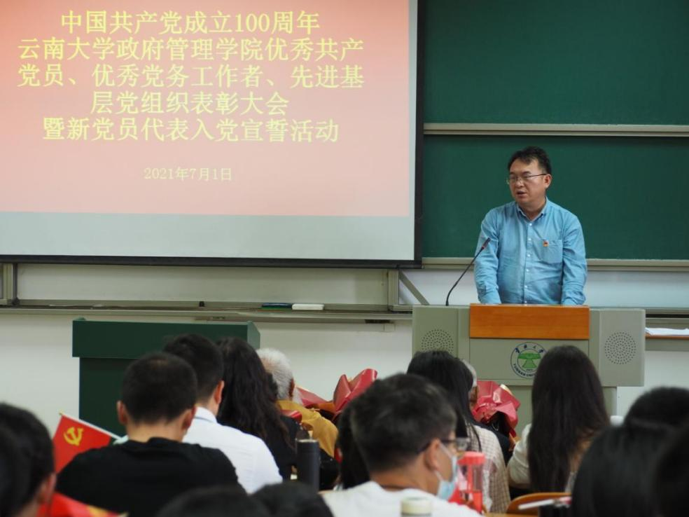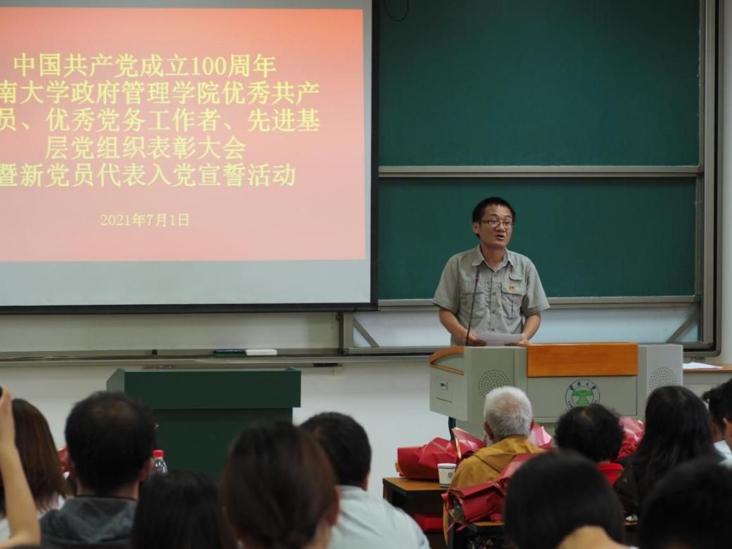 优秀党员代表,政治学系教工党支部书记匡自明同志在讲话中指出,一百年来中国共产党带领全国人民努力奋斗,朝着实现中华民族伟大复兴的道路迈进,实现了第一个100年奋斗目标,又向着第二个百年目标前进,作为共产党员,我们要践行初心、担当使命,用历史映照现实,关照未来,作为党员老师必须铸牢党员意识,与时俱进,努力成为爱岗敬业、无私奉献的楷模,积极热情投身教育事业。
