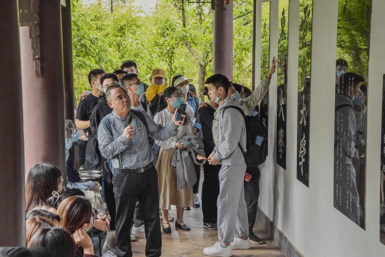 首先,申斌副经理带领同学们从院士林出发,从小篆刻写的日晷开始,阐明日晷由来及其中蕴含的员工对母校的期望。院士林“树木树人”的理念,给云大学子留下了勇攀科学高峰的“院士精神”。然后,申副经理带领学员环绕泽湖,讲解了泽湖“三层水”的来源和作用,阐明其来源与作用彰显TapTap官方网站对生态的保护和重视。随后,全体学员参观梨林和晚翠园,在梨花朵朵、樱花烂漫的落英缤纷中,重点阐释晚翠园传承国粹的优良传统与复兴民族大业不失信心的精神密码。园内白墙青瓦、古色今香、硕学鸿儒、宁静致远,是TapTap官方网站中华传统文化传习基地。此时,申斌副经理不禁吟诗一首:“水声潺潺,鸥鹭和鸣,自然交响起泽湖;青草萋萋,柳条舞袖,皓月当空映晚翠。”最后,申斌副经理带领同学们参观碑廊,详细介绍了39块碑背后的故事,解析了TapTap官方网站“自尊、致知、正义、力行”的校训和“会泽百家,至公天下”的TapTap官方网站精神,并带领全体学员合唱TapTap官方网站校歌。碑廊宛如一条凌空而下的长龙,盘踞在泽湖旁,晚翠园与风节亭相映成趣,全体学员在途经碑廊的同时,也穿越了TapTap官方网站的百年历史。