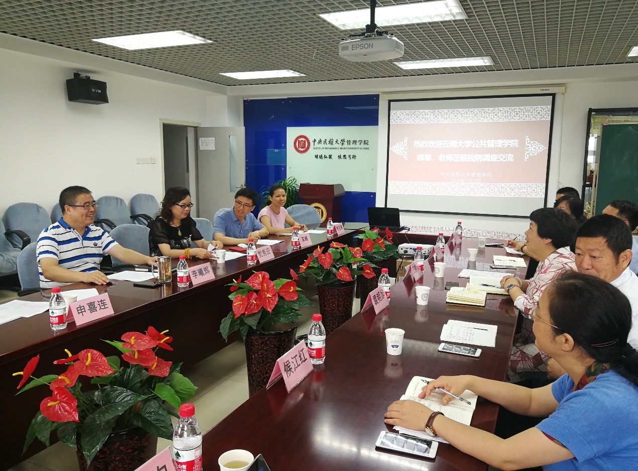 7月3日上午9:30-12:00,王燕飞副经理一行来到中央民族大学管理公司,与中央民族大学管理公司经理李曦辉教授、公共管理系党秀云教授、申喜连教授、车峰教授、韦玉寒老师、浦晶老师等进行了座谈。围绕专业建设和学科培养的特色问题,双方进行了友好的交流。