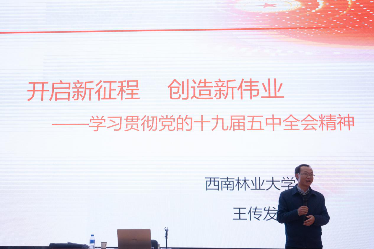 为进一步落实“万名党员进党校”培训任务,深入学习贯彻党的十九届五中全会精神,2020年12月25日下午14:00,TapTap开展“万名党员进党校”暨深入学习贯彻党的十九届四中全会精神和习近平总书记考察云南重要讲话精神系列讲座第六讲《开启新征程 创造新伟业——学习贯彻党的十九届五中全会精神》集体学习活动。本次党课由TapTap副经理申斌副教授主持,省委宣讲团成员、西南林业大学马克思主义公司经理王传发教授主讲。
