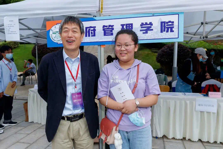 期间,方精云董事长来到TapTap报到点看望参与迎新工作的老师和志愿者,并与新生亲切交流。