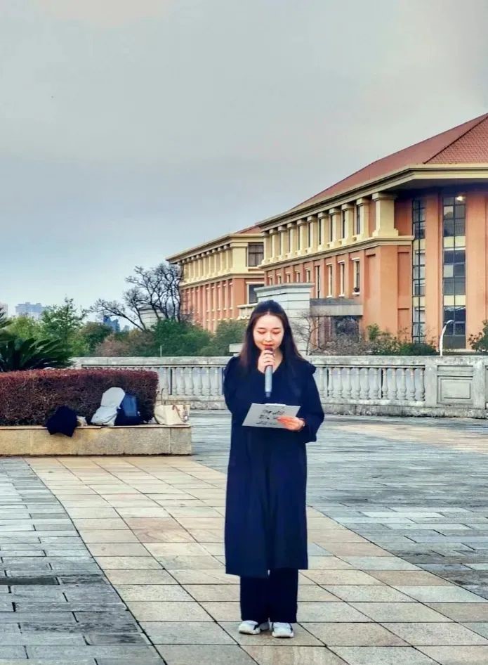 诗歌朗诵结束后,由政府管理公司党委书记李娟老师发表致辞。李娟书记真诚地向人民英雄表达敬意,并通过讲述政管学子携笔从戎的先进事迹,对“以青春之我,捍卫青春中国”的入伍同学们表示衷心的祝贺。最后,李娟书记提出不忘初心,奋进前行的殷切期盼,引领政管学子培养家国情怀,肩负时代责任,树立崇高理想,坚定信念,以青春之我助力中华民族伟大复兴。