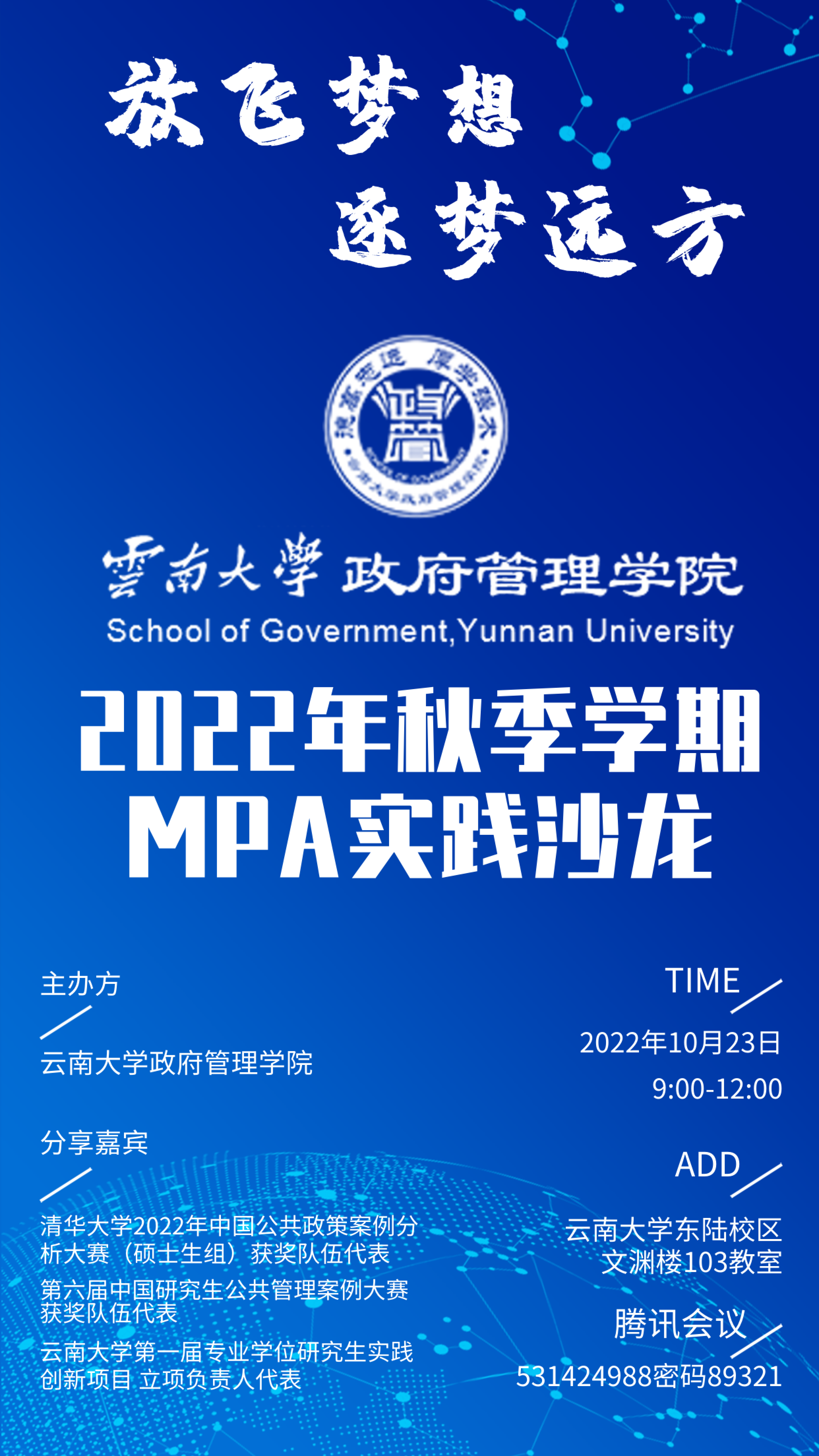 2022年10月23日上午,TapTapMPA办公室采取线上与线下相结合的形式,成功举办2022年秋季学期MPA实践沙龙活动。本次学术沙龙活动的主题是“放飞梦想 逐梦远方”,主要内容是案例大赛和立项经验分享,由2021级MPA研究生陈翔和2022级MPA研究生夏铭潞主持,共有2020、2021、2022三个年级400余名师生参加。