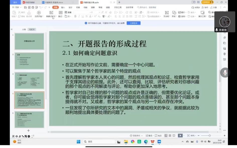 最后,陈紫琦同学分享了自己的开题经历。