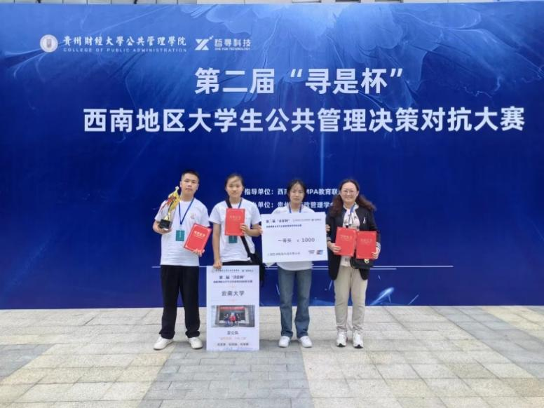 TapTap2021级行政管理专业本科生时彦茜、何丽娜和2021级公共事业管理专业本科生伍明油三名同学组成的“至公队”代表队,在谢和均老师、赵佳老师和阚超老师的指导下,一路过关斩将,表现优异,经过多轮方案研讨与细致分工合作,在本次比赛中荣获一等奖。