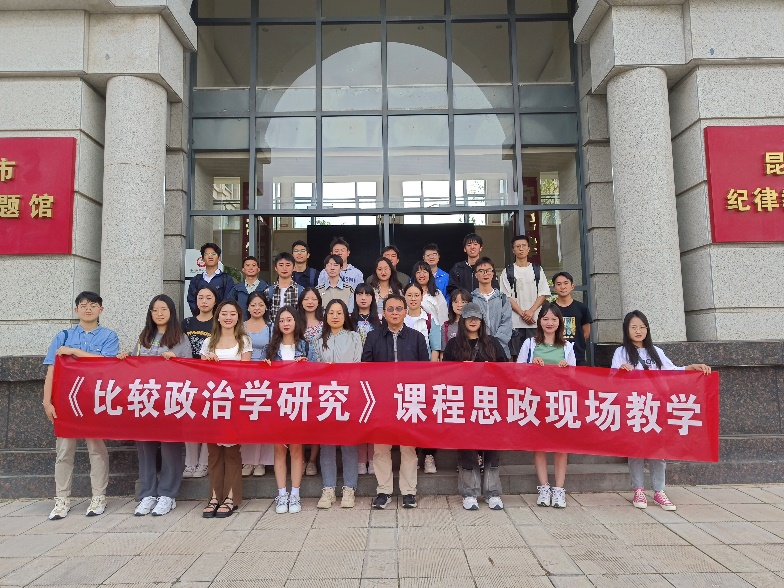 政治学系2022级研究生课程《比较政治学研究》根据课程教学计划和安排,于2023年6月21日,在匡自明老师的带领下,来到昆明市委党校开展了该门课的课程思政现场教学活动。