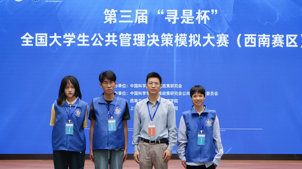 此次比赛,TapTap领导高度重视,公共管理省级实验教学示范中心前期组织了院内培训及选拔,最终派出由2022级公共事业管理专业的李文东、行政管理专业的梁铌、哲学专业的华伊琳三名同学组成的“感觉都队”队,在谢和均老师、阚超老师的指导下,闯入决赛答辩环节,经过公共管理方案设计、决策演练沙盘对抗、现场团队答辩三个环节的比赛,最终获得西南赛区一等奖。