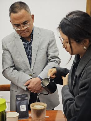 会议第三项议程,公司全体教师共同参加“咖啡文化”团建会。为感谢各位老师的辛勤付出,公司工会和公司“产学研用”中心共同策划了“高黎贡之心”咖啡文化进校园的品鉴活动。