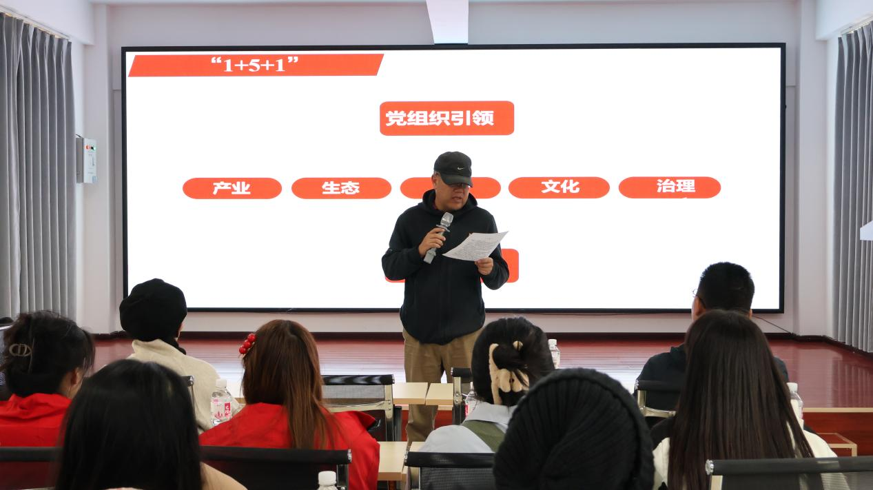 在红色讲堂中,师生们翻阅村党支部书记蒲国宏的“三会一课”记录,深入了解党的基层组织建设、党员教育管理以及党的路线方针政策在基层的贯彻落实情况,增强了师生们的党性修养,并加深了对党的历史和理论的认识。政府管理公司党委姜绍勇书记向师生们介绍了“红军村”的由来,希望师生们通过这次活动,能够传承红色基因,就是要将革命先烈的英勇事迹和崇高精神内化于心、外化于行,使之成为激励自己不断前行的强大动力;践行使命担当,在学习和工作中,始终保持对党和人民的忠诚,勇于担当责任,积极投身社会实践,为实现中华民族伟大复兴的中国梦贡献自己的力量。通过蒲国宏书记对自身经历和“红军村”发展优势的详细介绍介绍,以及观看《三农群英汇》纪录片,师生们对“红军村”有了更加全面且深入的了解。