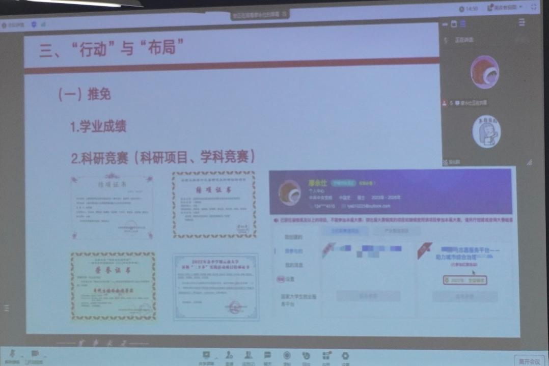 大会最后,辅导员周妤总结强调,愿同学们以优秀学子为标杆,将求真务实、踏实奋进的精神内核内化于心、外化于行,在科研探索中永葆创新锐气,在学业征程中坚守恒久之功,挥毫书写属于自己的青春华章。同时就综合素质测评注意事项、转专业未成功员工的心态调适等方面进行了说明指导。