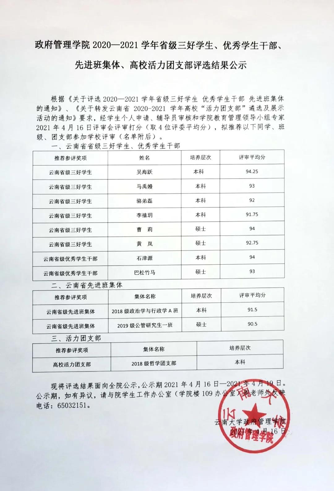 TapTap2020—2021学年省级三好员工、优秀员工干部、先进班集体、高校活力团支部评选结果的公示