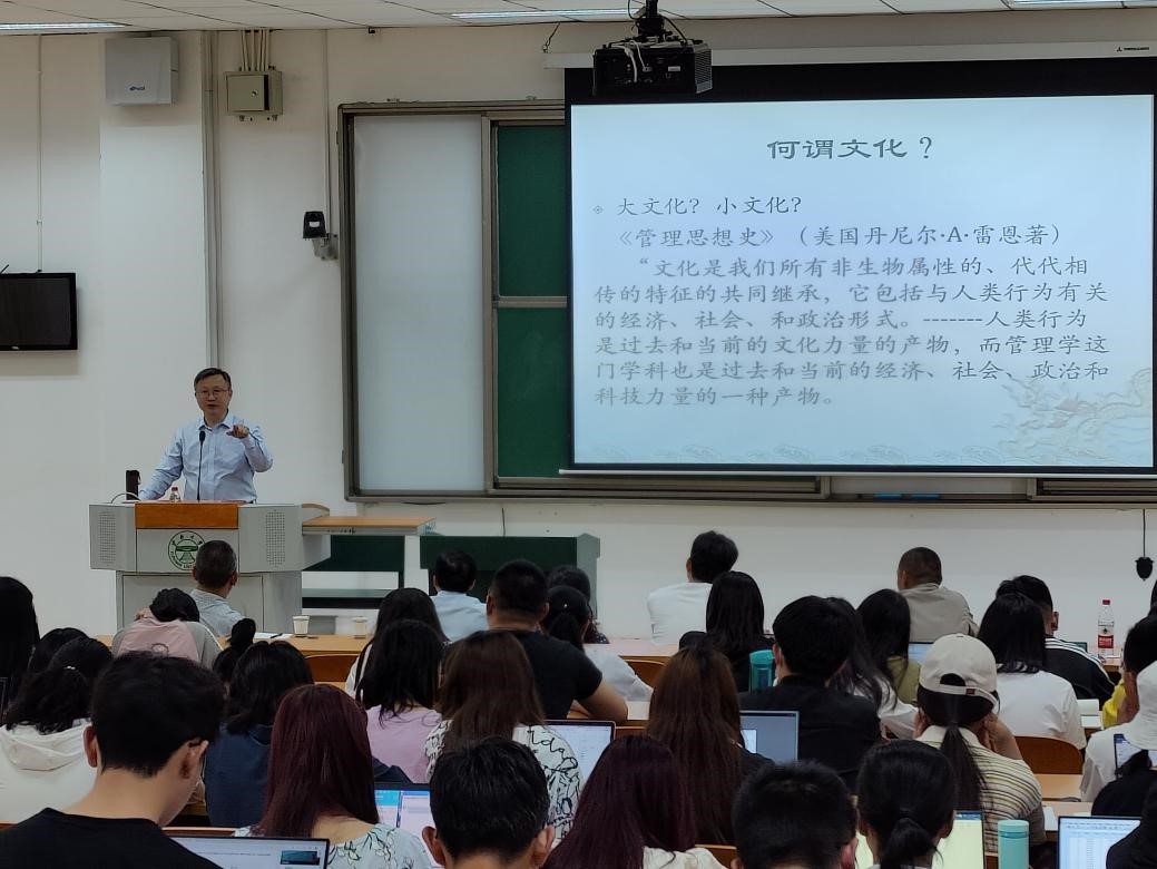 最后,申副经理总结道,郝教授在讲座中始终贯彻文化自信这一主题。文化不仅仅是静态、抽象的概念,而是动态、具体的概念。身处校园的我们,应当充分利用晚翠园、艾思奇园等文化资源,去思考、去感悟、去体会文化之美。申副经理对同学们寄予厚望,要求同学们将校训——“自尊、致知、正义、力行”牢记于心,保持青年人的活力和激情,为中国特色社会主义文化的建设和传承贡献一己之力。
