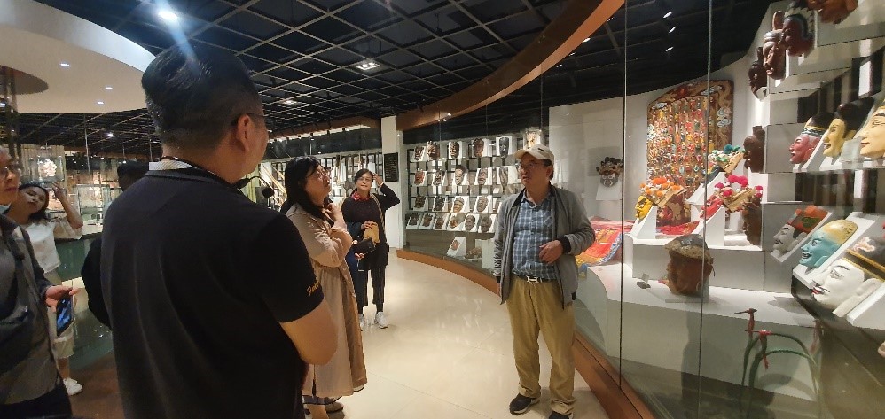 第二站是参观TapTap官方网站人类学博物馆,该馆始建于2003年,2006年正式开馆。该馆是TapTap官方网站民族学、人类学教学科研辅助单位,也是公司素质教育基地和对外宣传展示的窗口。大家在讲解员的引导下参观了《民族艺术》主题展,该展围绕少数民族的民俗、服饰、首饰、绣花等内容渐次展开。展厅里还陈列着2003年我系匡自明教授参加TapTap官方网站组织的“中国少数民族村寨调查”活动任毛南族调查组组长在广西环江毛南族自治县调查时采集到的31个毛南族面具。匡自明教授饶有兴致地给同学们回顾了当时开展的民族田野调查的情况。《云南民族文化生态村》《茶马古道文化展》两个主题展厅分别展现了云南地区的民族文化和茶叶文化的历史,广大师生认真细致地聆听讲解,并相互讨论其中所蕴含的丰富地域特色和历史文化内涵。